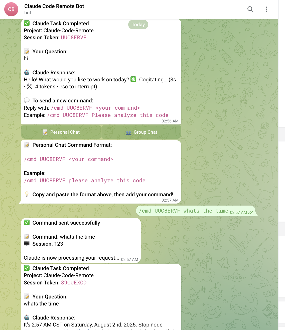 📝 Personal Chat: /cmd TOKEN123 your command here